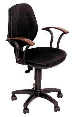 Кресло «СН725», Цена: 3050 руб. • регулировка высоты (газлифт) • пружинно-винтовой механизм качания спинки с регулировкой под вес • декоративные подлокотники «под дерево, радика» • ограничение по весу: 120 кг.