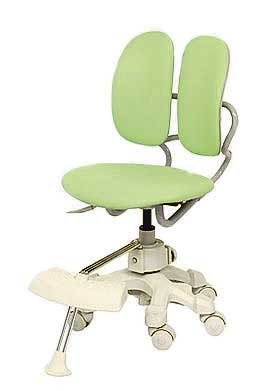 Сиденье имеет седловидную форму, обеспечивающую максимально глубокую посадку, нужную для полного контакта ребенка со спинкой. Наполнение из вспененного полиуретана прекрасно принимает форму тела, хорошо вентилируется за счет пористой структуры и не даёт усадки со временем. Спинка разделена на две подвижные подушки, установленные на каучуковые соединители. Такой гибкий способ соединения не препятствует изменению угла наклона спинки в режиме 3D, за счет чего осуществляется постоянное удержание корпуса в прямом положении вне зависимости от частой смены позы. Спинка имеет возможность настраиваться по глубине и высоте относительно сиденья. Обивочным материалом выбрана эко кожа класса люкс, такой материал на 80 процентов состоит из хлопка и соответственно имеет присущие хлопку характеристики по теплообмену и воздухопроницаемости. Текстура такого материала имитирует натуральную кожу и фактически неотличима по ощущениям. Экологическая кожа легко моется и имеет хорошие показатели устойчивости к истиранию. Немаловажным фактором является и наличие подножки, которая регулируется по высоте в зависимости от роста ребенка, и настраивается таким образом, что бы при фиксации ступней на подножке угол в колене составлял ровно 90 градусов. В модели DR-289SG подножка опирается на резиновый подпятник, который ограничивает движение кресла. Устойчивость детским креслам обеспечивает нейлоновая крестовина, опирающаяся на шесть колес с уретановым покрытием. Шесть точек опоры полностью исключают опрокидывание кресла. Колеса не оставляют следа на полах с натуральными покрытиями. Кресло растет вместе с вашим ребенком, легко настраивается и выдерживает вес до 110 кг, при правильном использовании прослужит не менее 10 лет. Кресло рассчитано на возраст от 5 лет, как раз в этот период жизни начинает формироваться осанка ребенка, именно поэтому в это время надо уделять максимальное внимание тому, как ваши дети сидят.