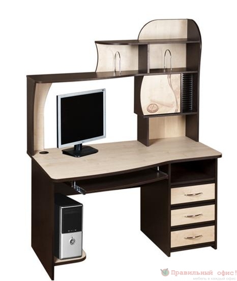 Компьютерный стол «Орион 3.10» отличается продуманным дизайном, оригинальным контрастным рисунком на дверце надстройки. Эта модель имеет повышенную функциональность за счет: эргономичной столешницы, ниши за дверкой в надстройке, полок и держателя для 20 дисков, Высота надстройки позволяет поместить монитор с диагональю 22 дюйма и более. Кроме этого под столешницей расположена выкатная доска, полка под системный блок и тумба с тремя ящиками, где можно хранить канцелярские принадлежности. Данная модель стола предназначена для организации учебного процесса, как школьника, так и студента!
