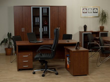Мебель для руководителя среднего и высшего звена. Коллекция в классическом стиле, плавные формы столешниц подчернуты материалом МДФ. Идеально впишется в интерьер как классического так и современного характера. Шкафная группа удачно дополняет полный комплект. Шкафы со стеклом в металлической рамке придают коллекции современное звучание. Поставляется со склада.