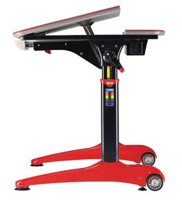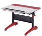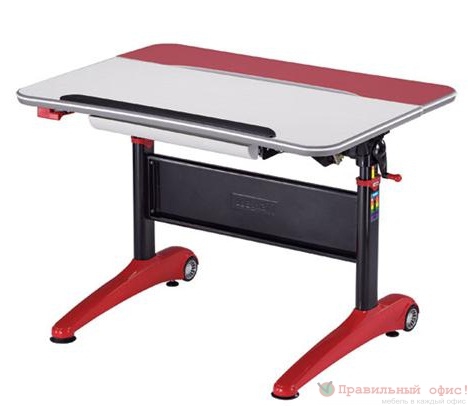 Столешница - ЛДСП 25 мм, кромка ПВХ Металлические опоры, покрытые черной и красной эмалью Изменение высоты (от 62 до 82 см) и угла наклона (до 18 градусов) столешницы Ростомер Выдвижная полка для канцелярских принадлежностей Передвигается с помощью колес в опорах стола Кабель-канал Размеры: (ШхГхВ): 120 х 70 х 62-82 см Цвет: Молочный / Красный